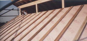 | 右、上の説明 垂木の上にコンパネ、断熱材、コンパネ、 フエルト、瓦棒 瓦となっている。 |